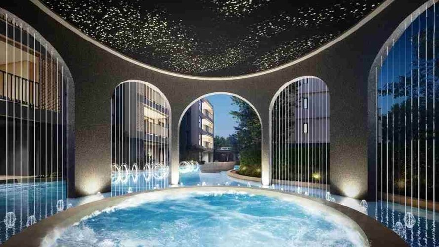 Сенсорный сад, бассейн под открытым небом, чайная комната, зона водоочистки и виды на закат создают атмосферу спокойного отдыха.